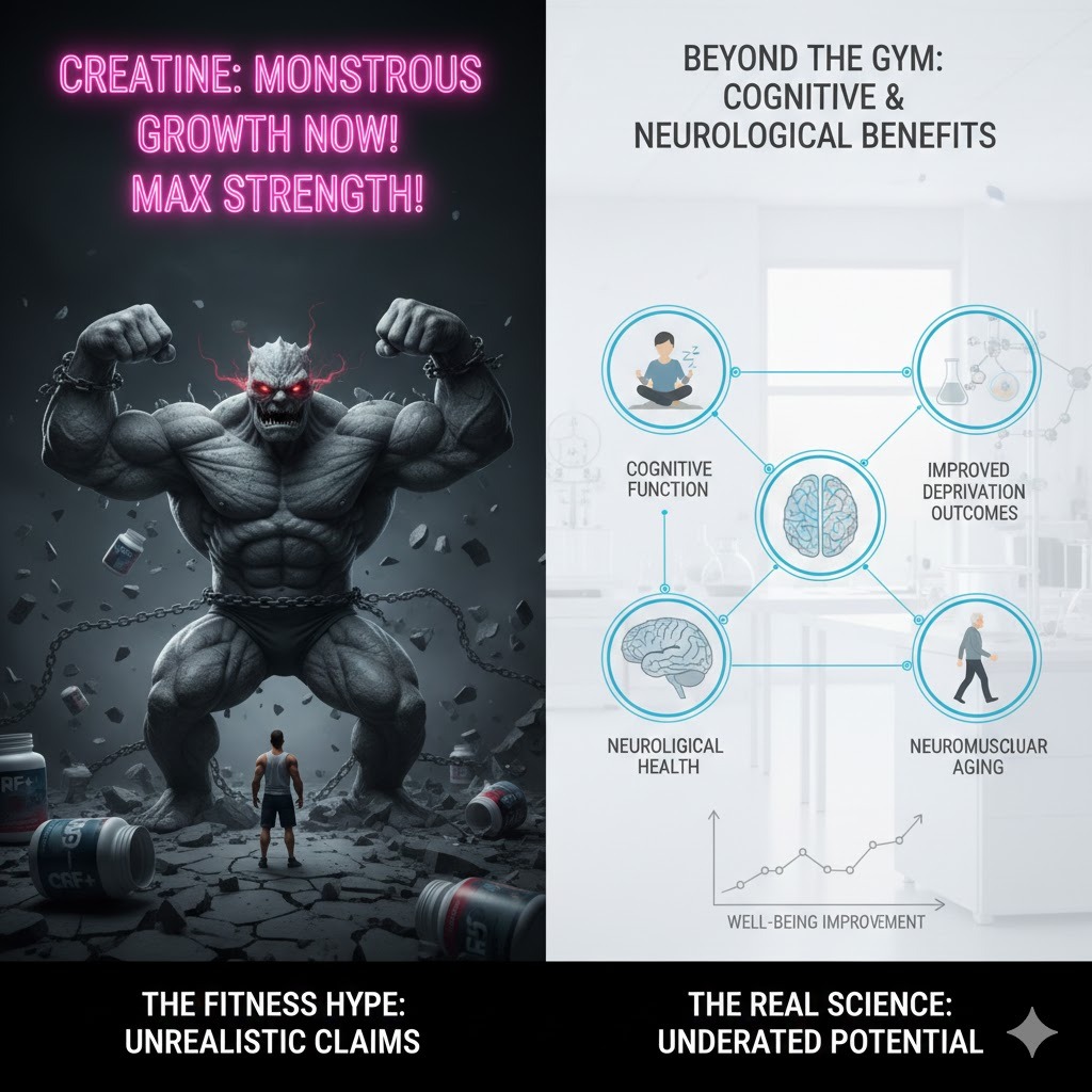 Es curioso que mientras se exagera su efecto en el fitness, se habla poco de otros campos donde la creatina podría ser más relevante.